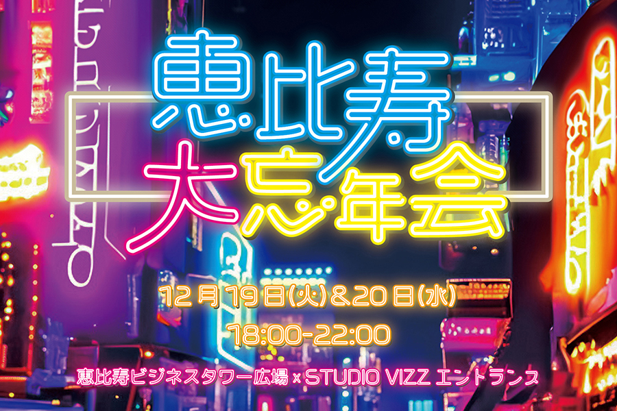 皆さん今年はどんな年でしたか?今年も残す所あとわずか。年末を締めくくる「恵比寿大忘年会」が12月19日(火)20日(水)恵比寿ビジネスタワー広場+STUDIO VIZZにて開催が決定。