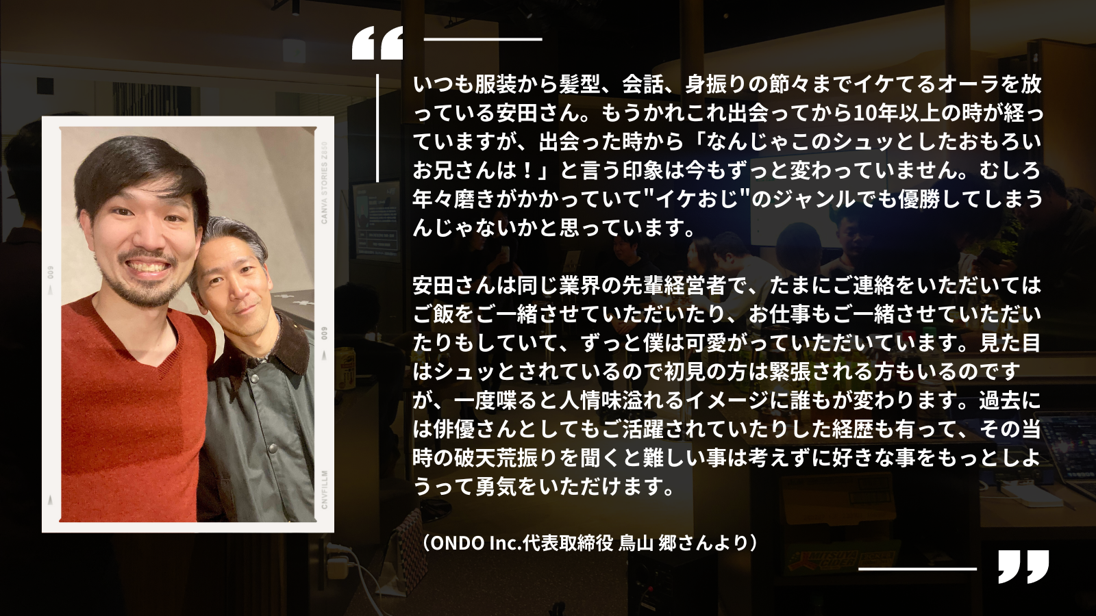 ■安田さん他己紹介 by ONDO Inc.代表 鳥山 郷さん