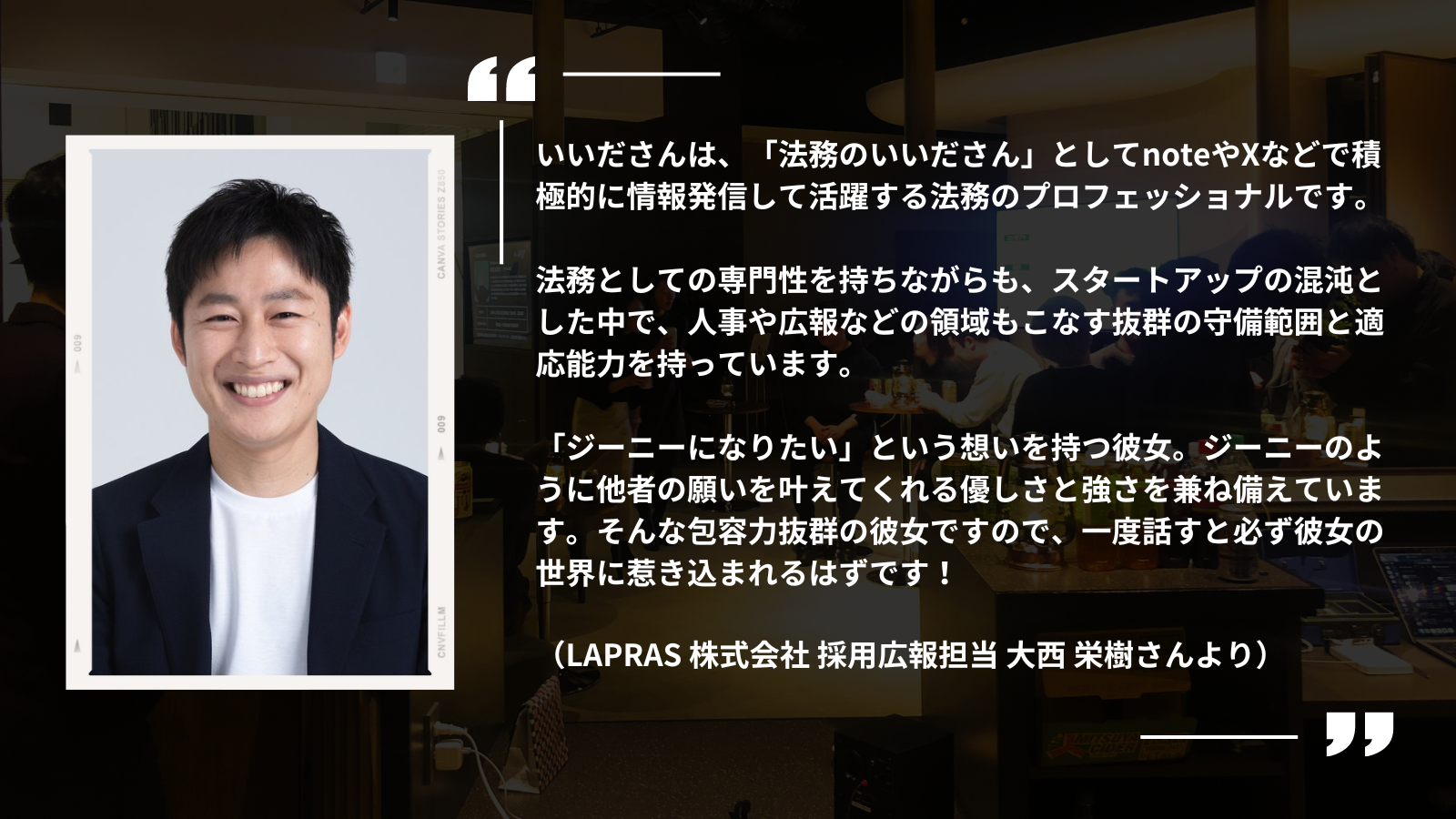 ■飯田さん他己紹介 by LAPRAS社 採用広報担当 大西 栄樹さん